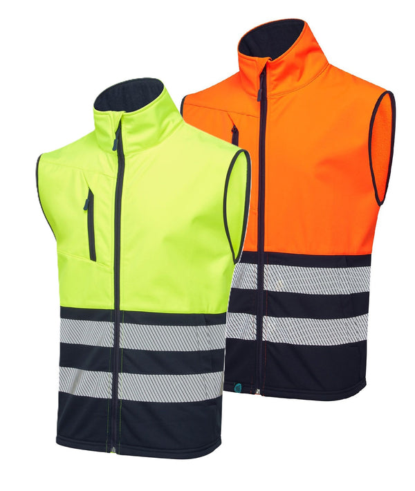 The Essentials Hi Vis Eco Coolair Softshell Gilet offers breathable protection and enhanced visibility for professionals in construction, utilities, transport, and logistics. Made from 100% GRS-certified recycled polyester, this sustainable gilet is both responsible and high-performance.
