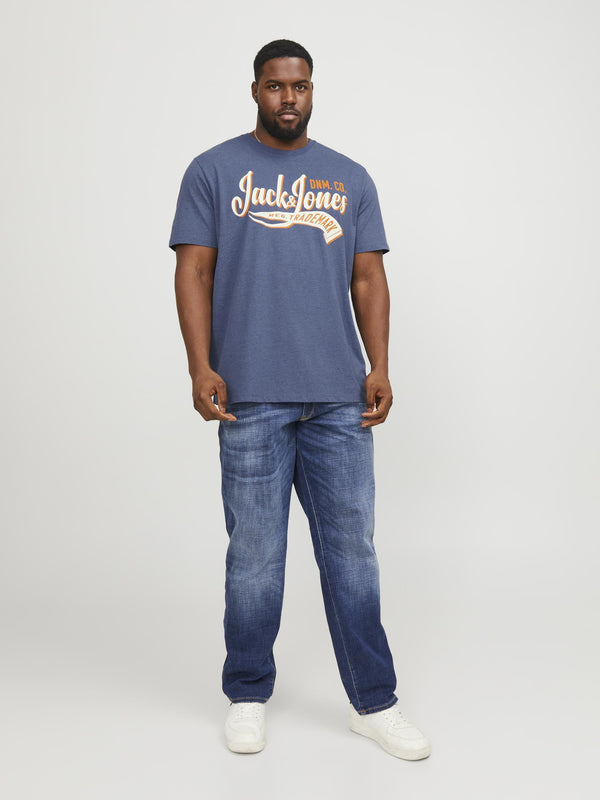 Jack & Jones Logo Plus Size Regular Fit Tee-ENSIGN BLUE