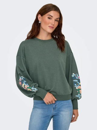 ONLY ONLBROOKE Flower Sweatshirt | Women’s Pullover – Borderland Muff - Borderland Muff